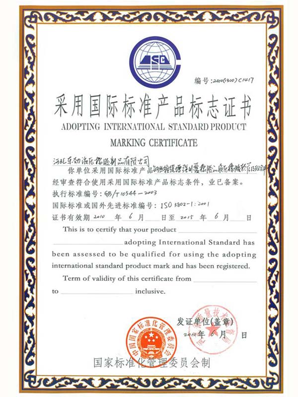 • 鋼編管國際標準產品標志證書